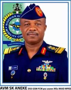 4. Air Vice Marshal Aneke has held numerous appointments in the Nigerian Air Force, some of these appointments include Admin officer at Aircraft Overhaul Centre Aircraft Maintenance Depot Ikeja, Admin officer and Group Logistics Officer at 301 Flying Training School NAF Base Kaduna, Commanding Officer Base Services Wing Air Maritime Group Benin and Staff Officer United Nations Peace Keeping Mission in Congo (MONUC) Kinshasa, Democratic Republic of Congo. Other appointments held include Fleet Training Officer, Wing Chief Admin and Wing Chief Operations all at the Presidential Air Fleet Abuja, Group Operations Officer and later Commander 307 Executive Air Lift Group Abuja, Deputy Director Evaluation (Air) Headquarters Nigerian Air Force, Command Evaluation Officer Air Training Command Kaduna, Command Operations Officer and Evaluation Officer Tactical Air Training Command Makurdi. The very senior officer has also held key appointments as Chief of Staff Air Training Command Kaduna, Command Operations Officer Tactical Air Command Makurdi, Director of Safety Headquarters Nigerian Air Force Abuja, Deputy Director Operations Headquarters Nigerian Air Force, Director of Policy Headquarters Nigerian Air Force and Deputy Commandant Nigerian Defence Academy (Africa’s Foremost Military University) Kaduna. He is currently the Air Officer Commanding, Nigerian Air Force Mobility Command domiciled in Yenagoa where he is doing well in adding value to the strategic intelligence of the Armed Forces of Nigeria in check mating all forms of criminality within his Commands’ Area of Responsibility.